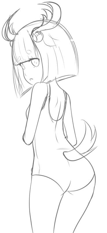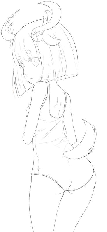 スク水タンザ ラフ、線画