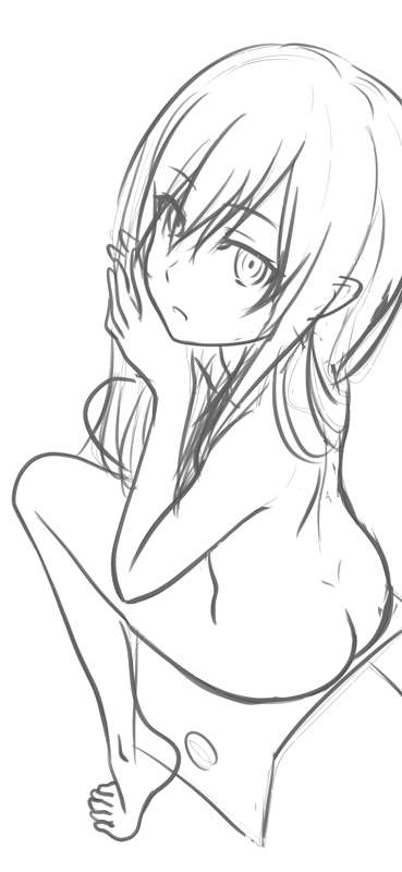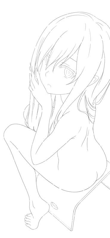 濡れ髪忍 ラフ、線画