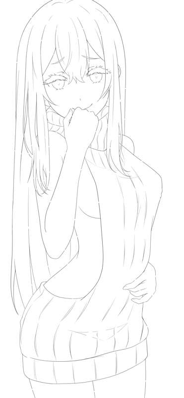 童貞を◯すセーターエキドナ ラフ、線画