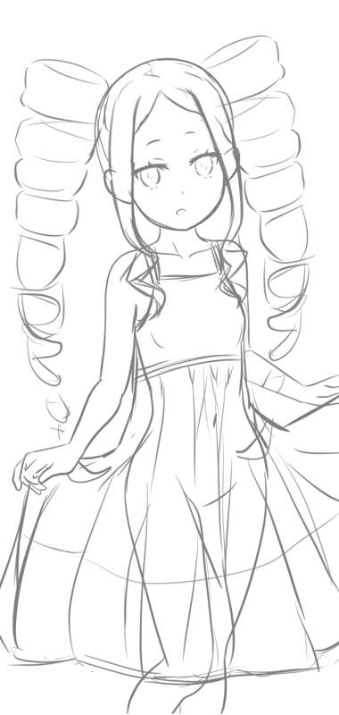 白ワンピベアトリス ラフ、線画