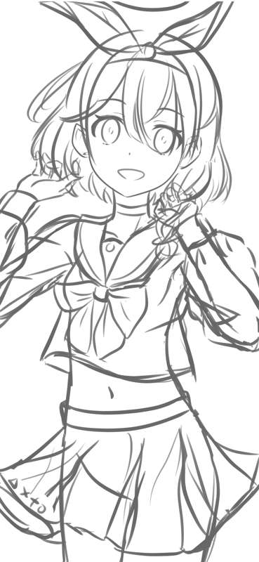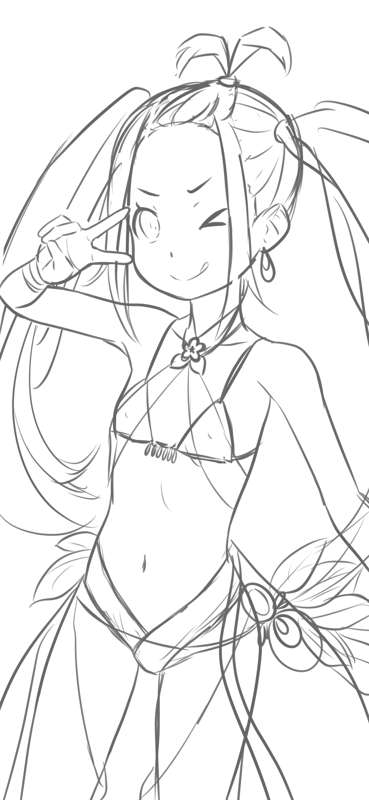水着トキ ラフ、線画