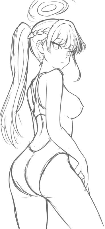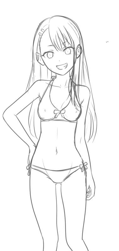水着うるティ ラフ、線画