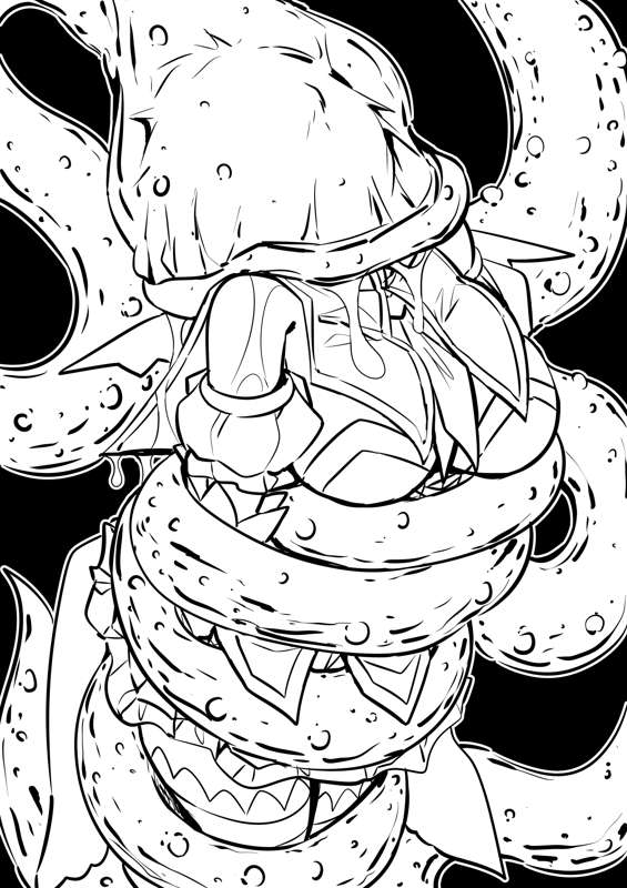 ほのか捕食(毎日カラーやられラクガキ71の線画)