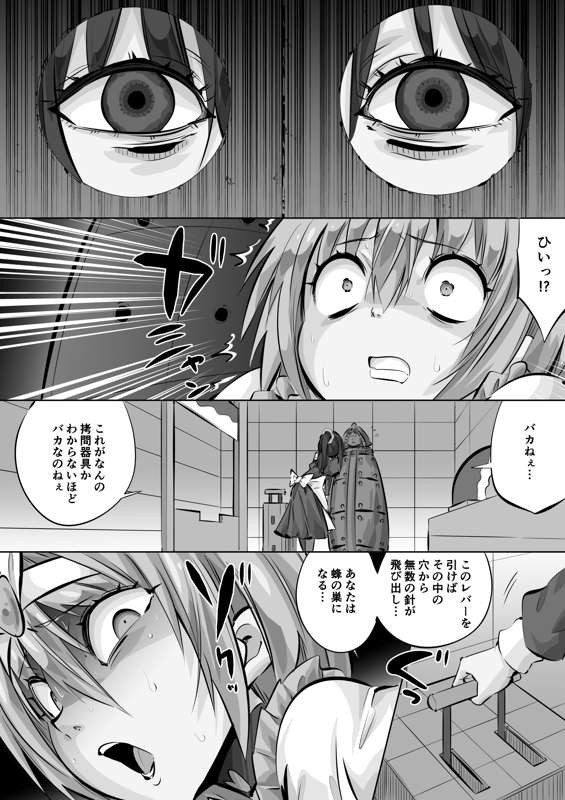 絵亜にアイアンメイデン3p目※血液グロ描写なし(毎日ヒロピン「マンガ」1443のグレスケ)