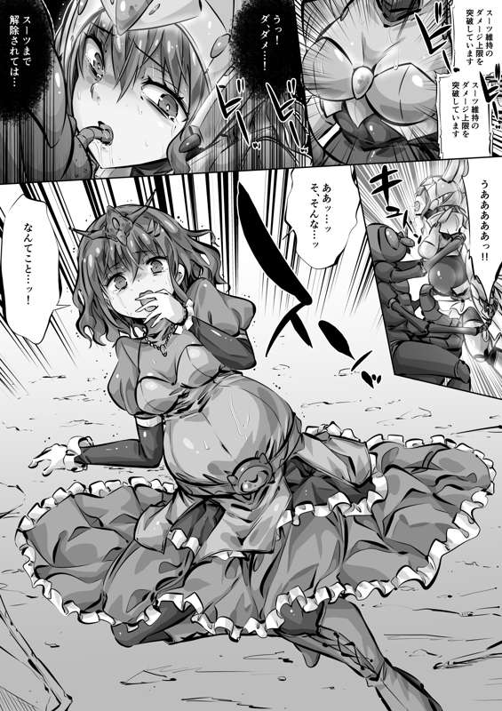 超甲戦姫メタルプリンセス「戦姫を貫く産卵管」9p目(スーツ破壊) (毎日ヒロピン「マンガ」1477のグレスケ)