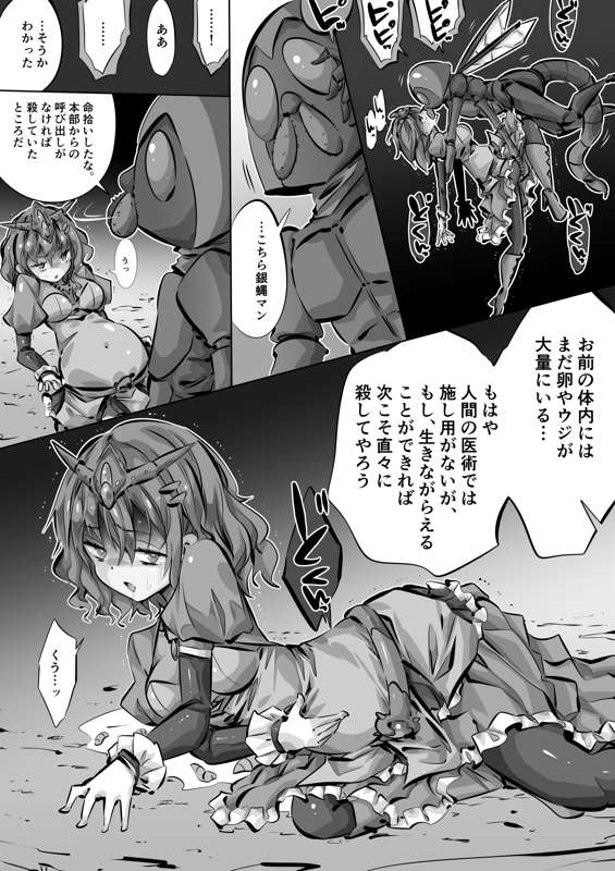 超甲戦姫メタルプリンセス「戦姫を貫く産卵管」12p目(命拾い) (毎日ヒロピン「マンガ」1481のグレスケ)