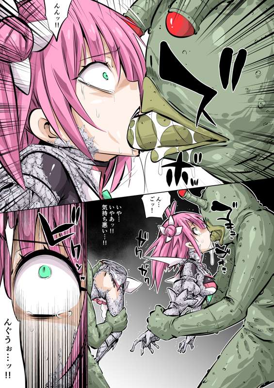 半石化のほのかを弄ぶモンスター達4p目(汚物キス)(毎日ヒロピン「マンガ」1551)