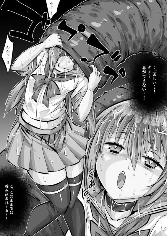 変身解除まりもを丸呑み(毎日ヒロピン「イラスト」1579のグレスケ)