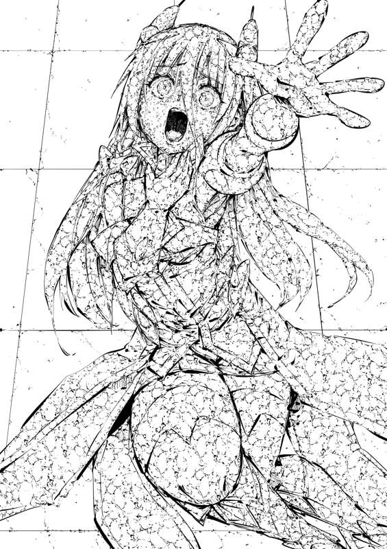 石化液で石化した久遠の風※瞳なし差分あり(毎日ヒロピン「イラスト」1725の線画)