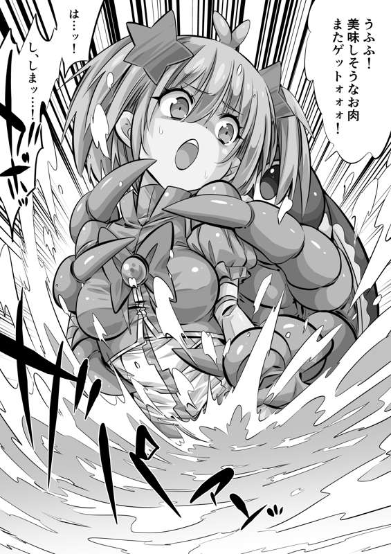 水中に引き摺り込まれる滅菌魔導士ほのか(毎日ヒロピン「イラスト1747のグレスケ」)