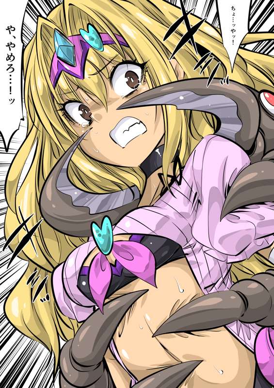 変身解除された絵亜を捕食(毎日ヒロピン「イラスト」1669のグレスケ)
