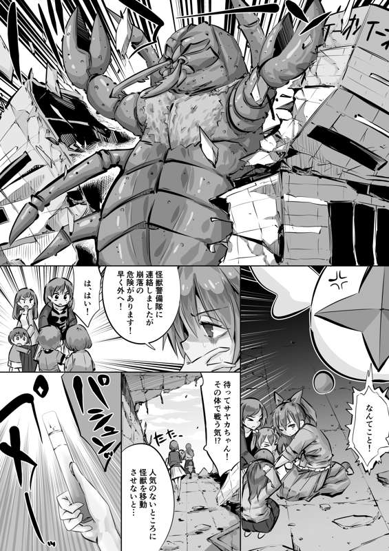 変身解除まりもを丸呑み(毎日ヒロピン「イラスト」1579のグレスケ)