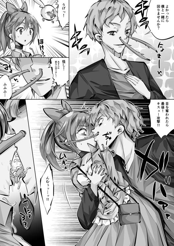光の聖女シュプリームレディ4話「宇宙バイ菌ドリー」2p目『キスュー攻撃』(毎日ヒロピン「マンガ」1568のグレスケ)