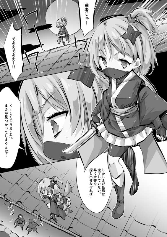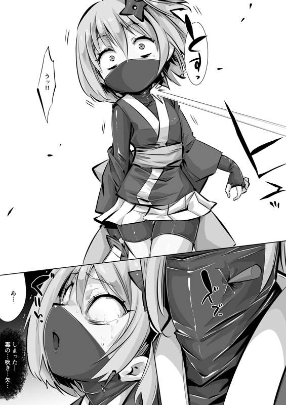 くノ一ちゃんで学ぶ、拷問・処刑の歴史1話「石抱き」2p目(吹き矢)(毎日ヒロピン「マンガ」1518のグレスケ)