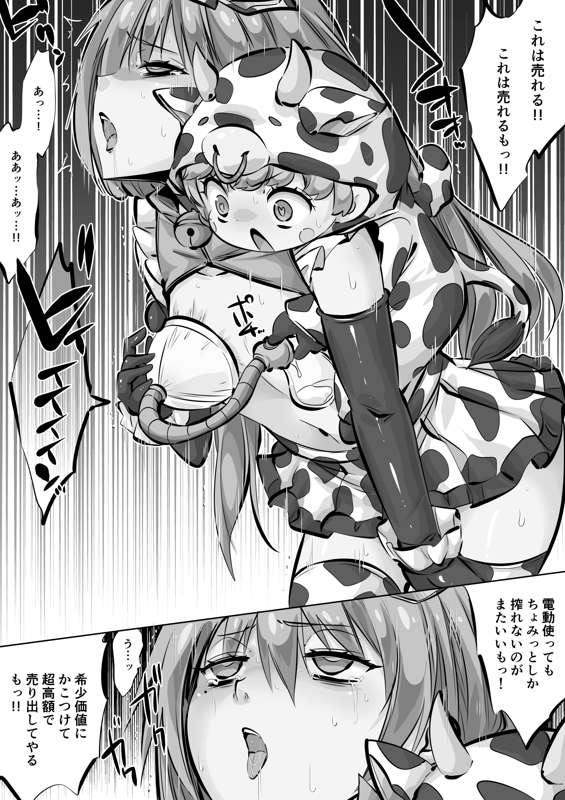 牛さん装備まりもに搾乳攻撃4p目「超絶…」(毎日ヒロピン「マンガ」1524のグレスケ)