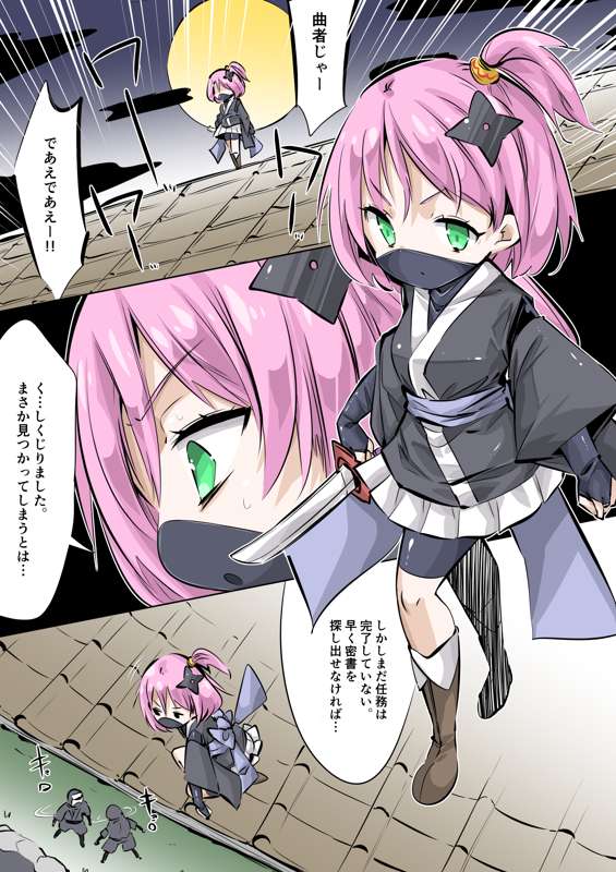 くノ一ちゃんで学ぶ、拷問・処刑の歴史1話「石抱き」2p目(吹き矢)(毎日ヒロピン「マンガ」1518)