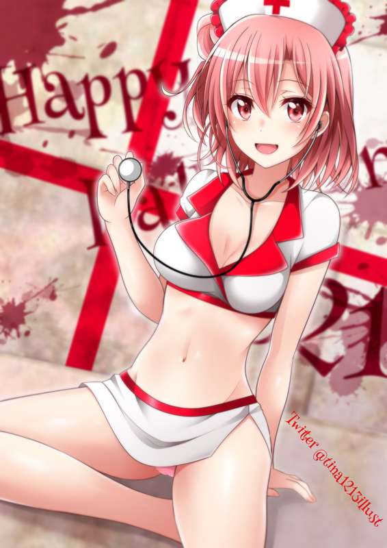 ガハマさんのナースコスイラストです🎃やっぱガハマさんめっちゃ可愛い(再認識 とりあえず衣服を脱いで一番大きく脈打ってる部分を診てもらってくださいね😏✨ このガハマさんは裸から描いたからたくさん差分描けるぞ〜!✨