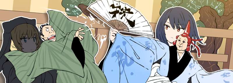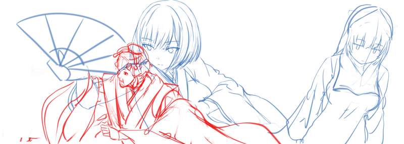 新人ちゃんと遣う人ヘッダー、ヘッダー没、姫カットさん、巫女さん宣伝用(画像がでかい版)です。
