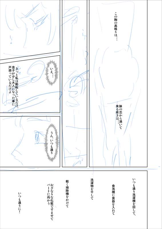 近女誘惑の次作の冒頭のネームです。 何やってるかよく分からない程度のラフですがお話の流れは分かって頂けると思います。 全体では80p程度になる予定です。 出来るのは2019年かもしれません。