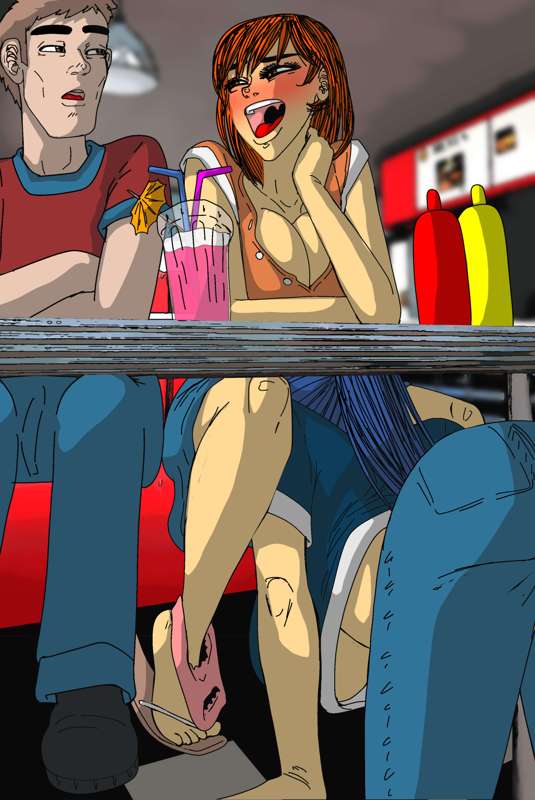 Izumi is bored being a third wheel on Yuki's date with her boyfriend, so sneaks under the table for a little fun time.
