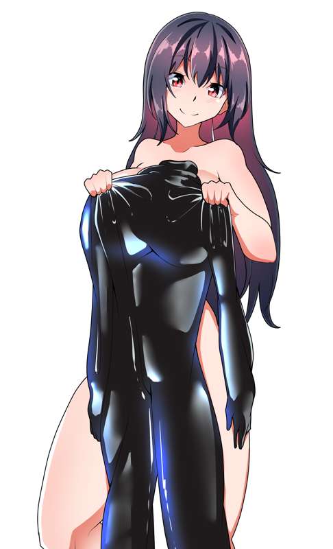 自室で購入したラバースーツを見る女の子 高画質版背景なし