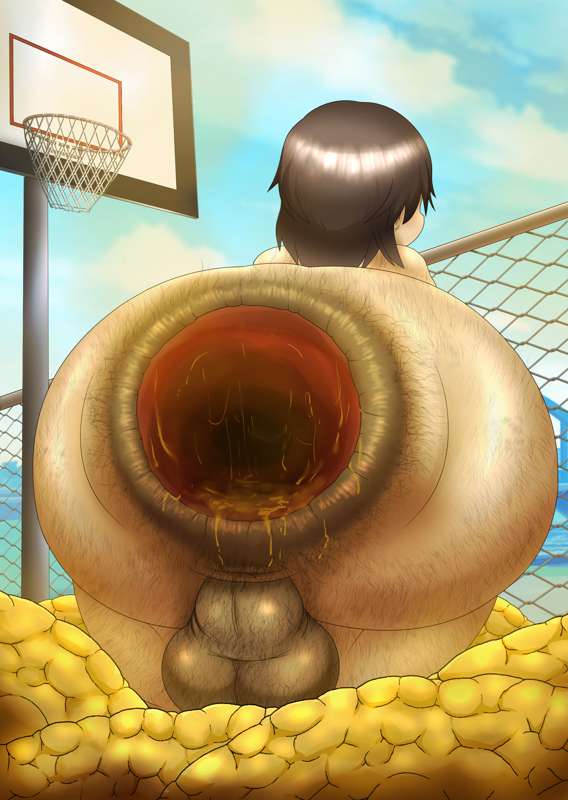 バスケットボール挿入した後に大量脱糞する変態のイラストです。 Dickgirl・汚っさん化の差分があります。