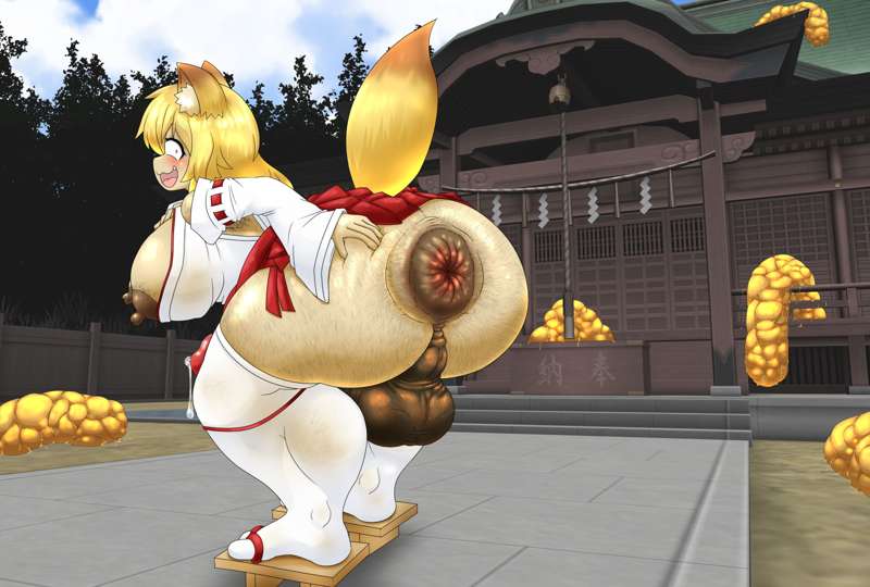 変態巫女狐が神社で大量脱糞するイラストです。