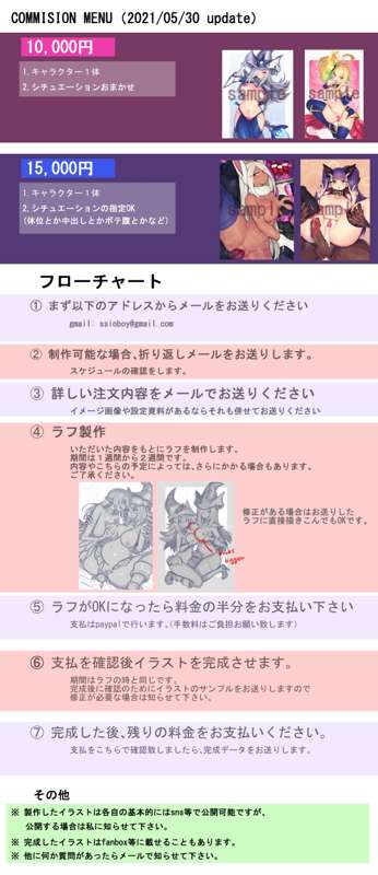 コミッションの内容は依然と同じです。