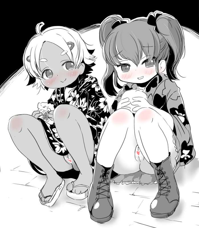現在描いている同人誌のキャラから、そららさんと、さんごちゃんです。差分は裏わるい子バージョンです。