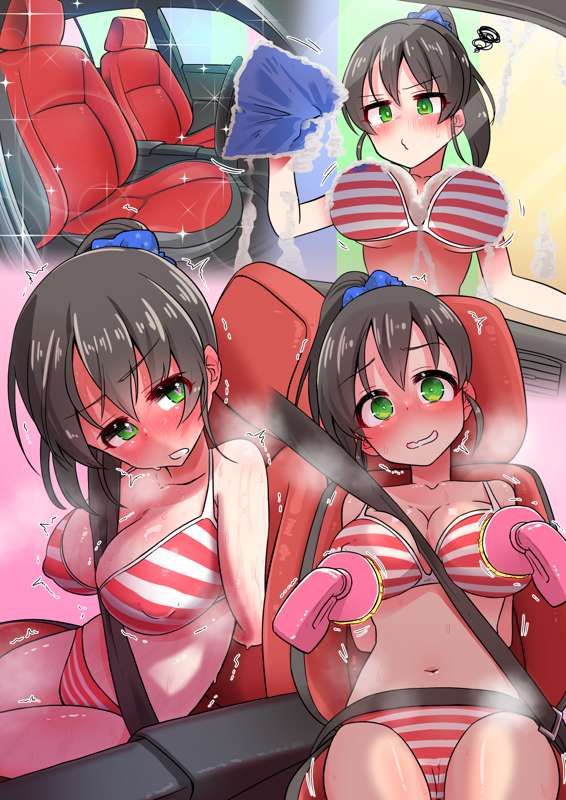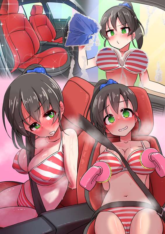 ・カーレースに負けた罰ゲーム(美世ちゃん洗車タイム)で、椅子(カーシート)に拘束され半脱ぎになり、ローラー回転ブラシ(媚薬液付き)でおっぱいや乳首を洗われて絶頂してしまうエロバラエティ