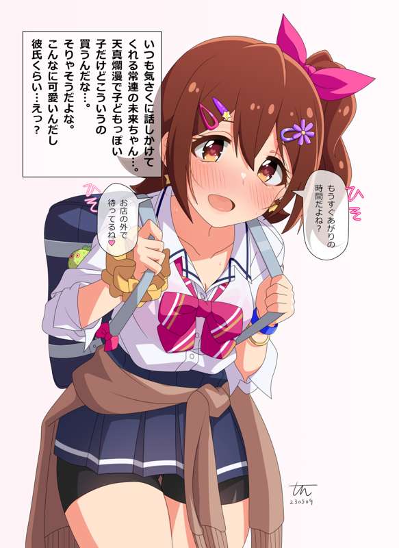 【23/05/16追記】 最初のギャシリーズの制服デザインと近しいデザインだったので同じデザインに変更しました。というわけで未来ちゃは海美たちと同じ二年生です。