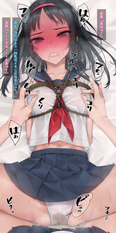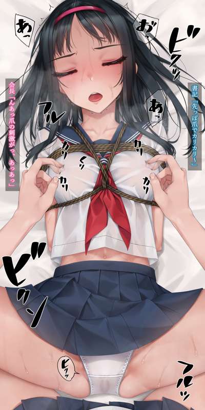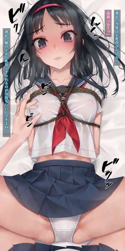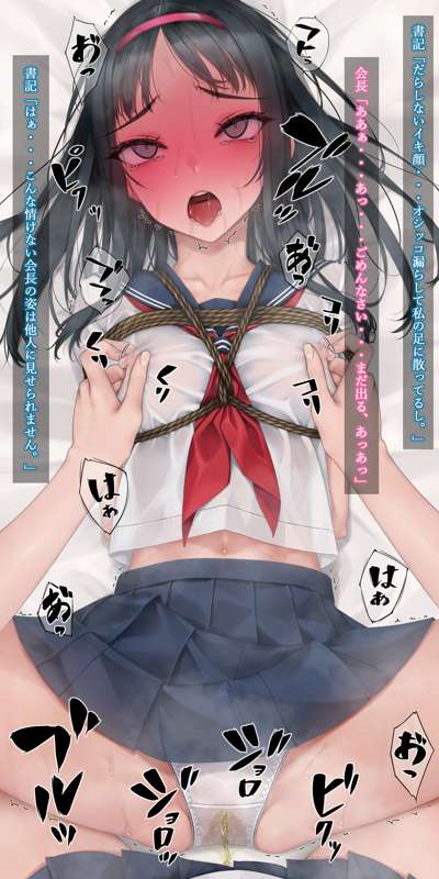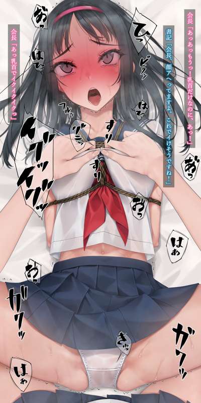 以前巫女装束で乳首だけ責めされた会長ですが、今回は制服での乳首だけ責め。 カリカリコリコリスリスリとセーラー服の上から書記ちゃんにイクまでしつこく乳首をこねくり回されます。 会長のパンツは乳首の刺激だけでびっちゃびちゃ。最後はあまりにも乳首が気持ちよくてイキおもらし。 定期的に乳首責めが描きたくなります。 文字有り文字無し等含めて差分45枚。 後日PSDファイルを追加します。
