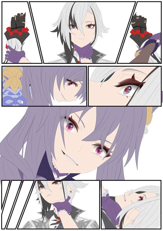 I underestimated how long the base coloring would take, though I don't know what I expected with that many pages. Yet I still can't get enough of drawing Arlecchino. Now I still have to finish all the variants, that's going to be a fun night shift. though i'm still probably going to finish some of the other pics first before im doing the shading on this one. Anyways, like always I hope you like it and let me know what you think of it.