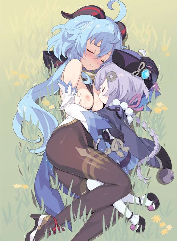 お昼寝中、懐に潜り込んできた七七にココナッツミルクを吸われる甘雨さん🐑