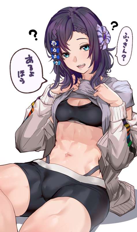 おなかを見せてくれるういは(汗+文字無し)