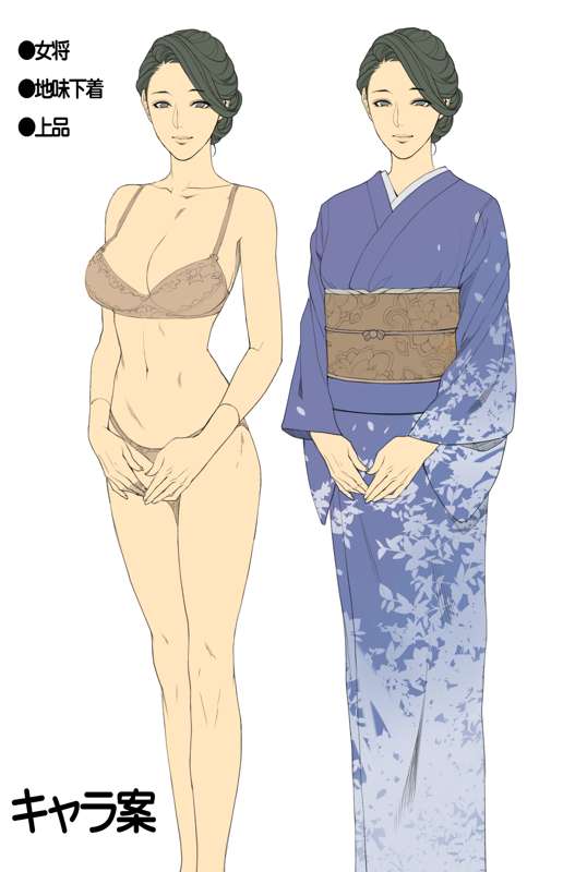 以前描こうと思っていた漫画のボツキャララフです。 上品な女将が娘の親友に犯されてズルズル快楽に溺れていく…という内容でした。 ちょっと地味すぎたかも…。