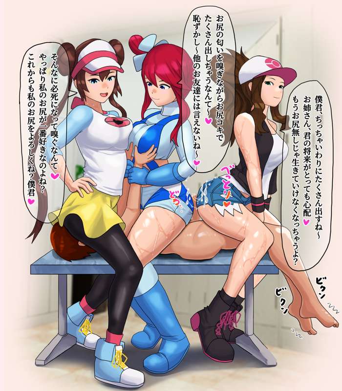 ・フウロさんのお尻嗅いでるの見てたよ〜 私たちのお尻も押しつけてあげる お尻好きの変態君にはお似合いのポーズね