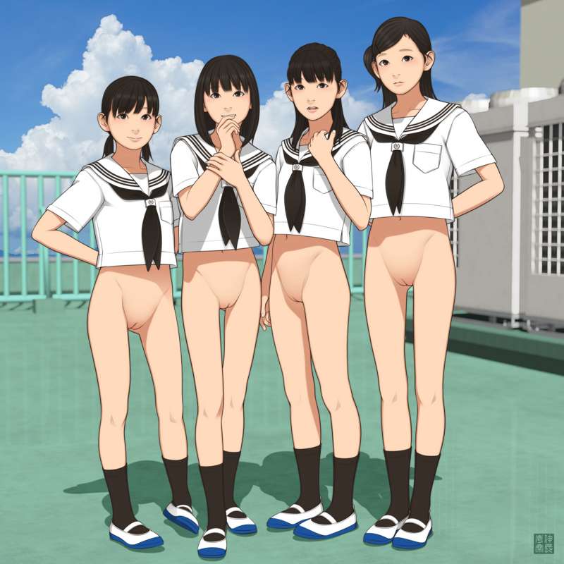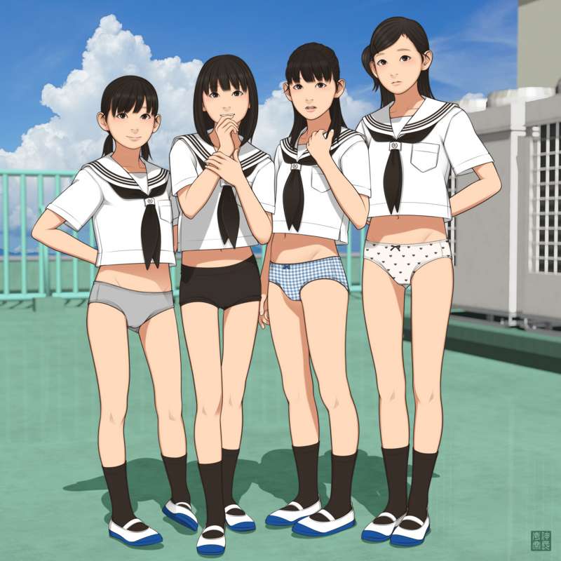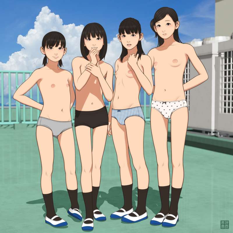 『小学六年生図鑑』から里美百香、『小学五年生要録』から楠木凛と生駒千佳、『〇〇性徴博覧会』より船木茉莉子の4人が中学1年生になった4月ごろの体格となります。
