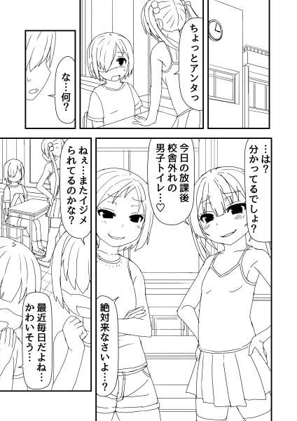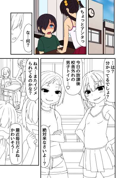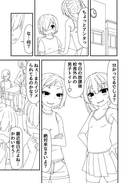 男子トイレが使えずこっそり女子トイレに入って用を足した後に つい隣の個室を覗いてしまった男の子。 ちょうどトイレに来た初恋の女子がおしっこする姿を見ながら 無意識におちんちんを触って初めての射精をすることに。 -------- ちよこさんから頂いたお題を元に描いてみました! これはなかなか背徳感のあるネタですね…! 構図にも悩みましたがとても挑戦しがいがありました!(*^o^*)