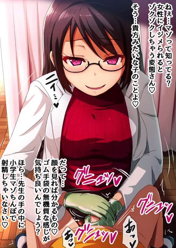 保健室の先生にゴム手袋で性処理してもらった 快感が忘れられず勃起したまま保健室に来た男の子。 そんな彼のM気質に気づいていた先生は 小学生の小さな亀頭を楽しそうに弄ぶのでした。 --------- akさんから頂いたお題を元に描いてみました! 保健室の先生にゴム手袋コキされてMに目覚めた〇〇〇です! なかなか背徳的な感じに仕上がったと思います…!