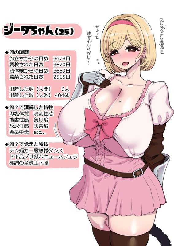 グラブルの10周年イベントでラジエル見てからいいな…これは描こう! と、ちまちま描いてたのですが、どうせなら爆乳ジータちゃんもセットにしたいなと思っていたら、昨日急に「ジータちゃん25歳…!?」とアイデアが降ってきました。のでちょっとした設定立ち絵みたいなのを描きました。 世間を知らないかわいいだけの小娘が旅に出たらそりゃえっちな目に遭うよね。大体の世界線でこうなったいるはず。俺は詳しいんだ!