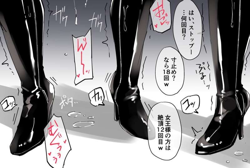 百合SMカップルで野外発展場でSMショー→会話、お触りNG厳守が条件だったけど徐々に間合いを詰めてくる単独男性たち→女王様邪魔じゃね?といった流れです。