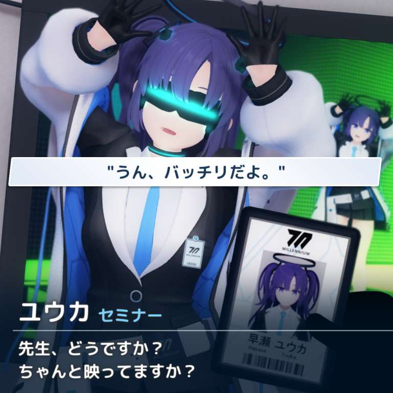 予想よりも早く終わったため、先生が持っていたVRダンスゲームをユウカが遊ぶことに。