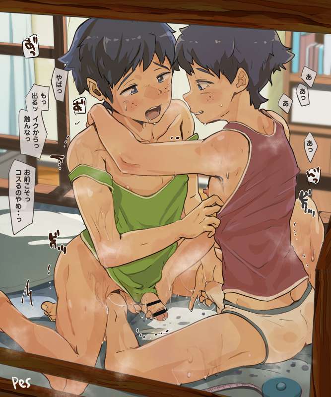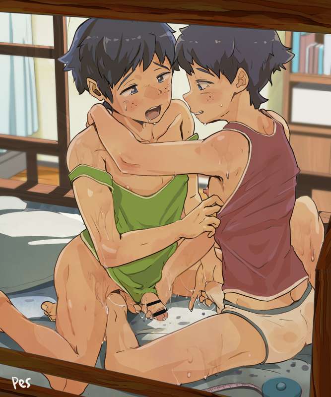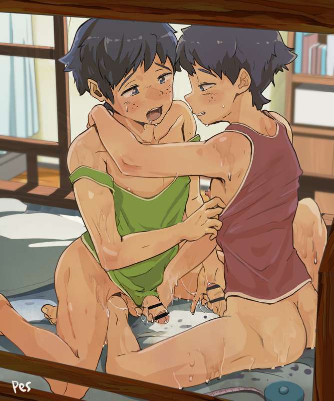 二段ベッドの中で、お互いの体を比べっこしていた双子くんたち、触りあっているうちにムラムラしてきてしまい・・・😎