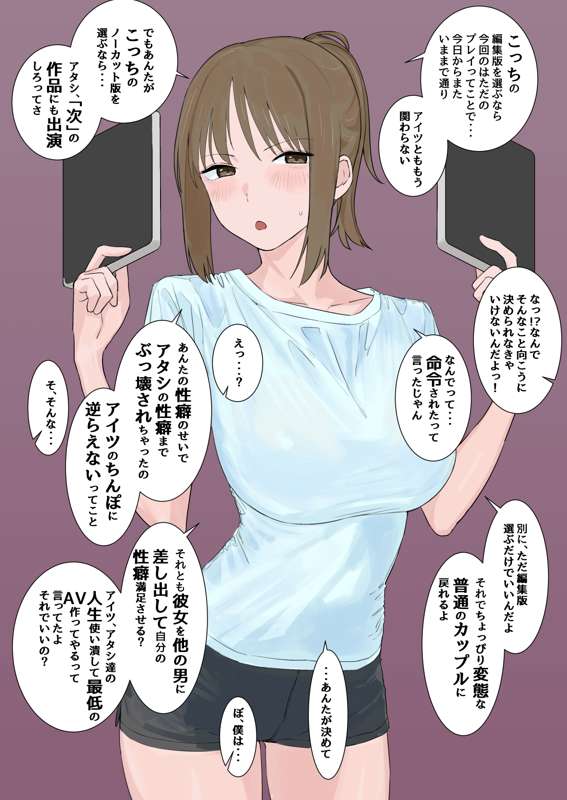 彼女をネットで知り合った寝取り師に依頼して寝取らせプレイした結果 ハメ撮りをAVパッケ風に編集されて渡された彼氏の後悔と選択です。