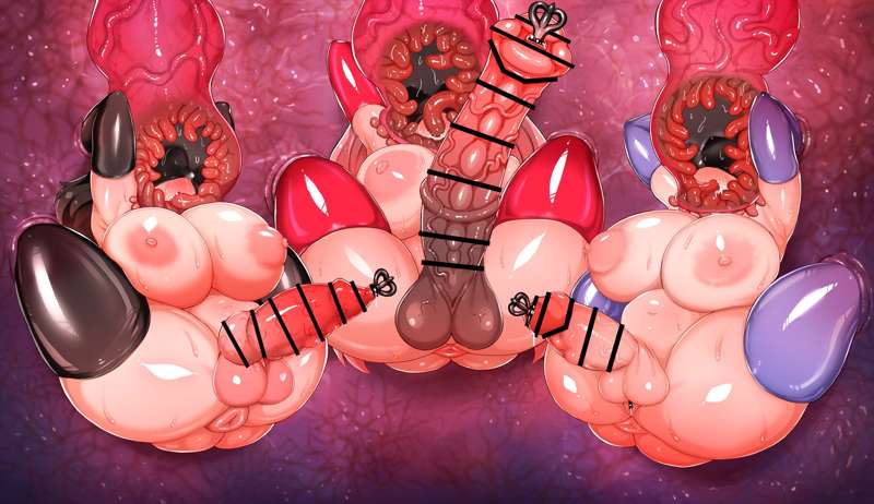 ラバータイツふたなり娘触手責めアナルゼリー排泄(イラスト:差分8枚)