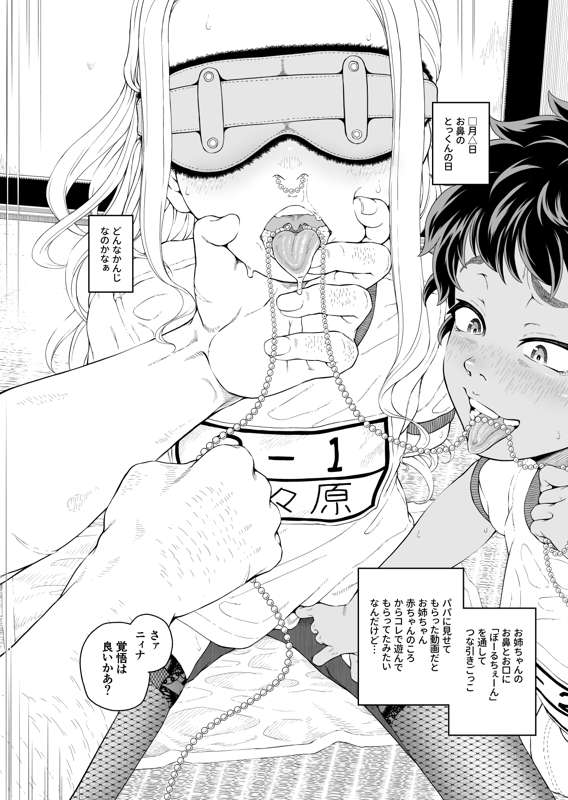 「パパ」に〇〇されている燕とニィナの姉妹。 今日はニィナお姉ちゃんのお鼻からお口にボールチェーンを通して綱引きごっこ。 次回は燕ちゃんのお鼻で遊びます。12月上旬投稿予定。