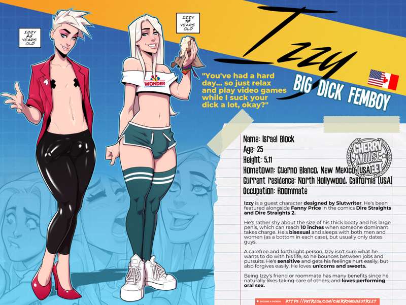 \x3c64697620636c6173733d22706f73742d636f6e74656e742220646174612d726f6c653d22706f73745f636f6e74656e742d74657874223e3c64697620636c6173733d22747269782d636f6e74656e74223e0a3c68313e434841524143544552205348454554202d20495a5a593c2f68313e0a3c6469763e0a3c62723e3c6120646174612d687265663d2268747470733a2f2f7777772e70617472656f6e2e636f6d2f6368657272796d6f7573657374726565742f706f7374732220687265663d222f617761793f75726c3d6148523063484d364c7939336433637563474630636d56766269356a623230765932686c636e4a35625739316332567a64484a6c5a5851766347397a25304164484d3d25304122207461726765743d225f626c616e6b223e3c7374726f6e673e4368657272794d6f7573655374726565743c2f7374726f6e673e3c2f613e20697320646f696e6720736f6d652070726f66696c6573206f6620746865697220636861726163746572732c20616e6420746865792077657265206e69636520656e6f75676820746f20646f206f6e65206f6620497a7a792073696e63652068652077617320696e20746865203c656d3e44697265205374726169676874733c2f656d3e20636f6d6963732e3c62723e3c62723e5468697320696e636c75646573206120736e65616b207065616b20617420497a7a7920612066657720796561727320646f776e2074686520726f61642120417320796f752063616e207365652c2068652773207374696c6c2066656d6d7920616e64207374696c6c20736c616e67696e672061206c6f74206f6620636f636b2078443c62723e3c62723e496620796f7527726520696e746572657374656420696e20736565696e67206d6f726520434d53206368617261637465722073686565747320666f7220616c6c206f6620746865697220636861726163746572732c20636865636b206f75742074686569722050617472656f6e2076696120746865206c696e6b2061626f7665213c2f6469763e0a3c2f6469763e3c2f6469763e